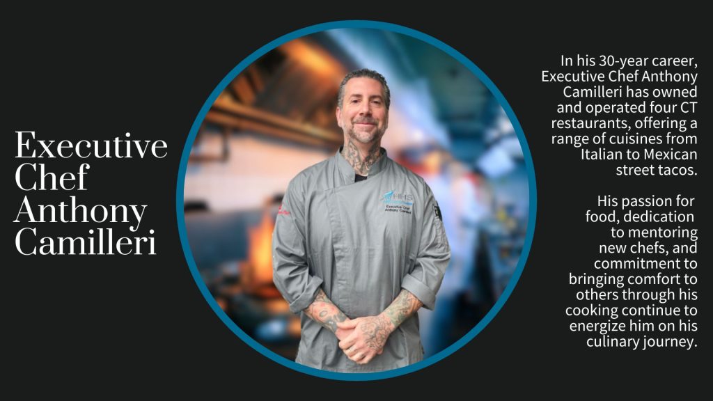 In his 30- year career, Executive Chef Anthony Camilleri has owned and operated four CT restaurants, offering a range of cuisines from Italian to Mexican street tacos. His passion for food, dedication to mentoring new chefs, and commitment to bringing comfort to others through his cooking continue to energize him on his culinary journey. We are so excited to share we have launched a brand-new YouTube cooking series — Chef’s Table — featuring our Executive Chef. Watch this new series here!